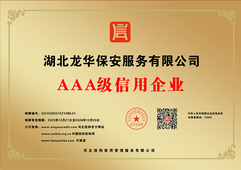 公司管理人员和项目经理、项目队长都是具备大专以上学历的部队复转人员。安保骨干力量均具有5年以上大型保安岗位从业经验和丰富的管理经验,高度忠诚度和使命感是湖北龙华的优势所在。公司自组建以来,不断在前进中探索,在实践中总结,始终坚持“以人为本”“精诚守则”的企业精神,恪守“用我们的专业为您保驾护航”的经营理念,坚持“专业专注、务实高效、品质服务、诚信共赢”的服务宗旨,为客户提供高质量的安全保卫服务。